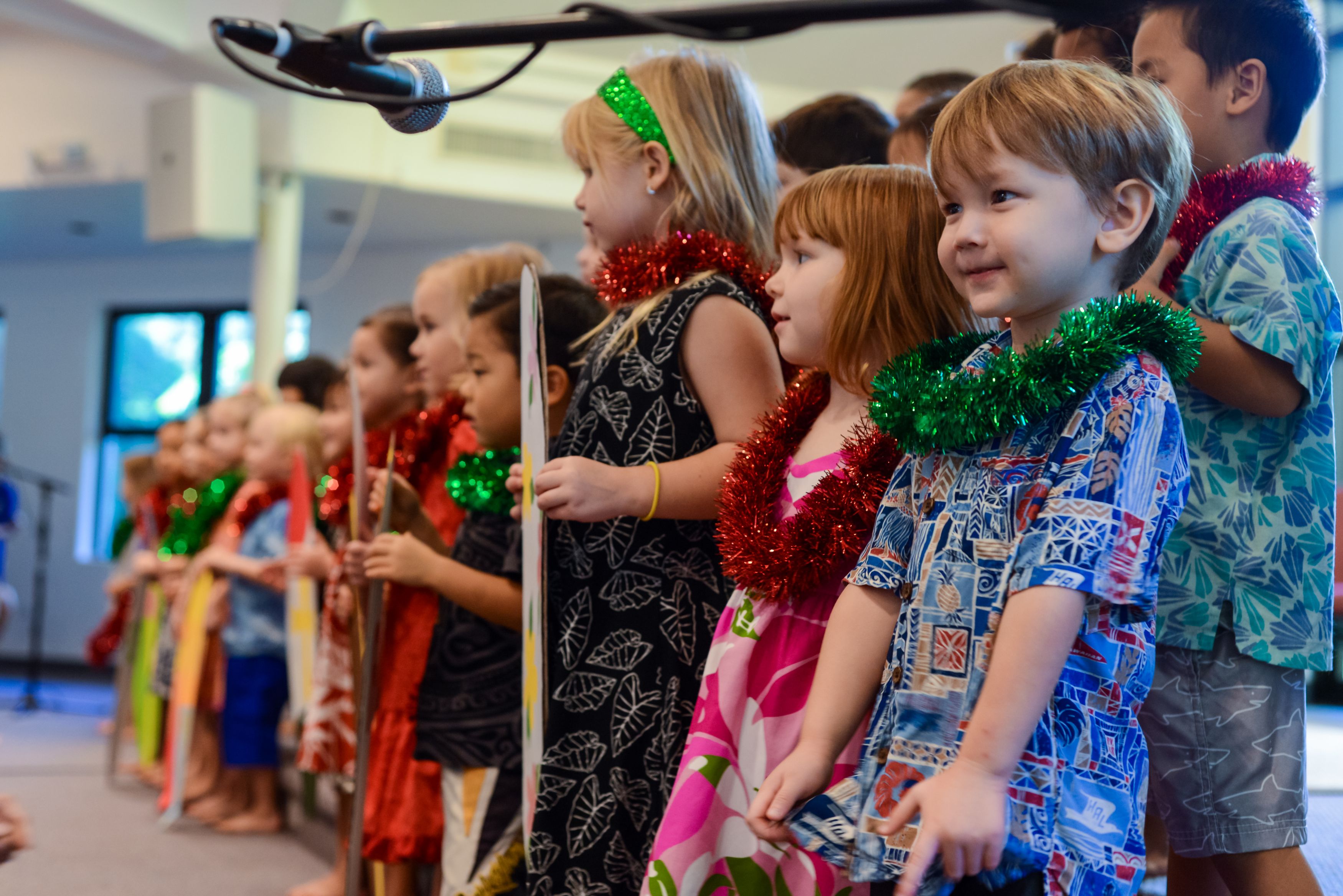 Our Pre-Kindergarten (3 years old by June 30) and Junior Kindergarten (4 years old by June 30) classes are below state-mandated teacher/student ratios. In addition to their lead teacher, students attend specialist classes in music, physical education, swimming, Hawaiian language, and multi-sensory activities. Excursions and special events (Christmas Program and May Day) further complement the preschool experience, and provide opportunities for family involvement.
